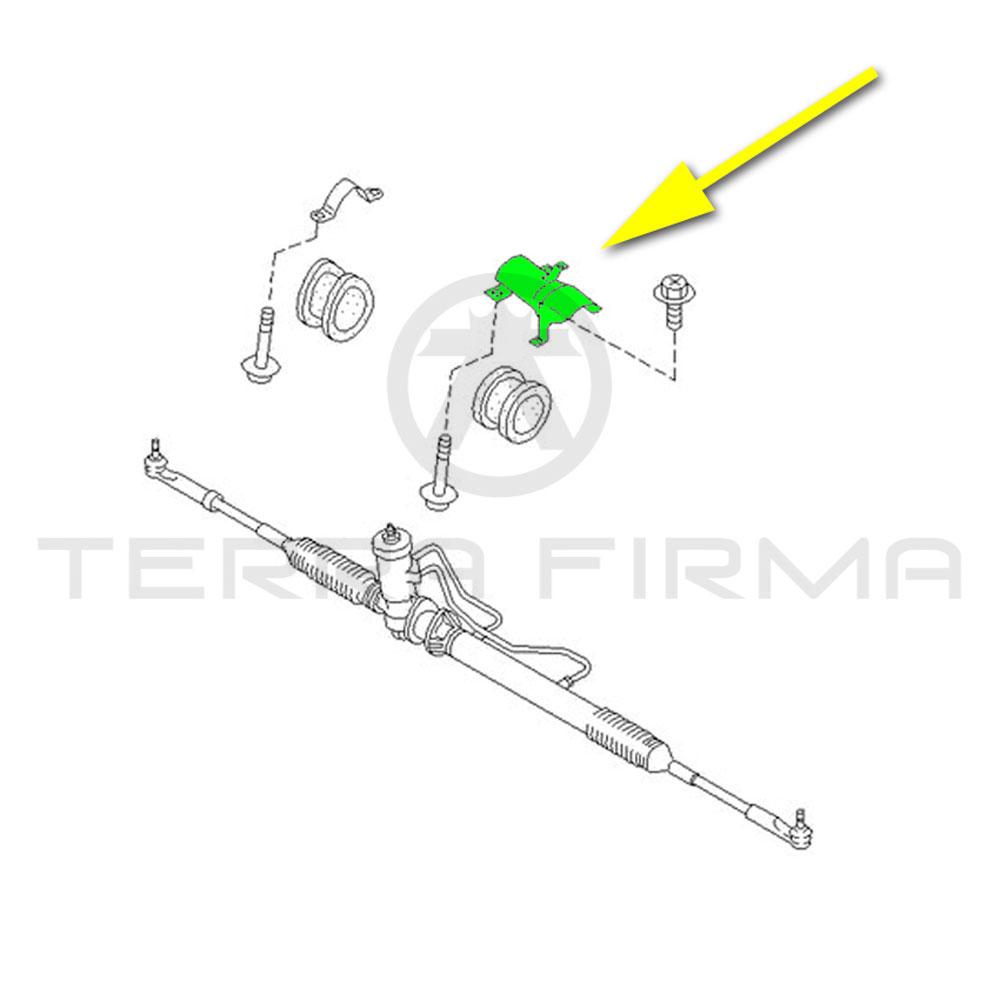 New Genuine Nissan R32 GTR, GTS-4 steering rack bracket. Stamp steel unit commonly damage or missing.