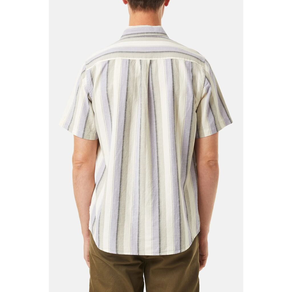 The Kenwood Shirt features a custom vintage-inspired striped allover pattern atop a breathable cotton/linen button-up woven shirt.