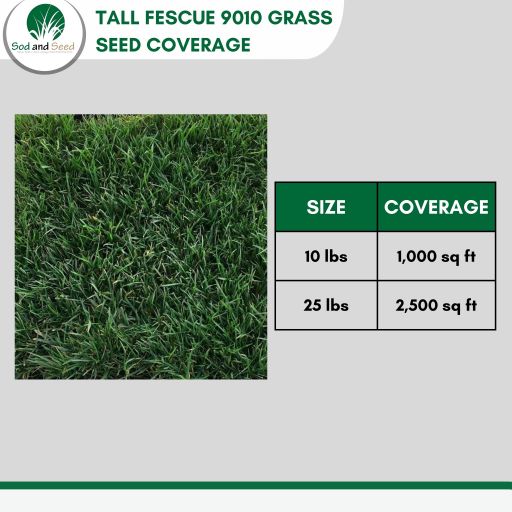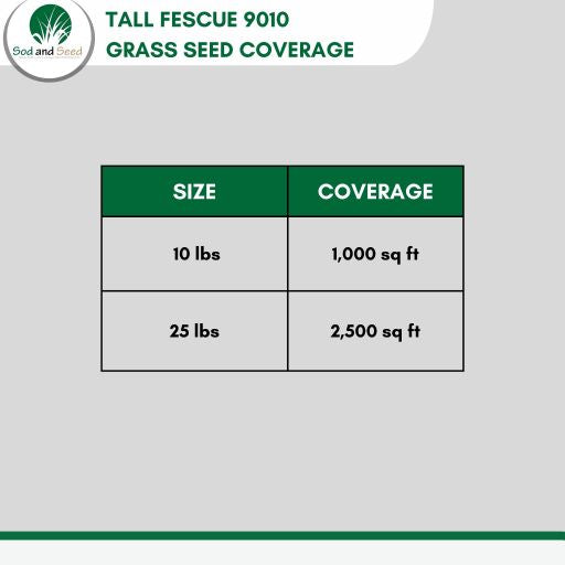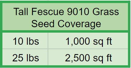 10LBS of our Tall Fescue 9010 grass seed covers 1,000 Square Feet